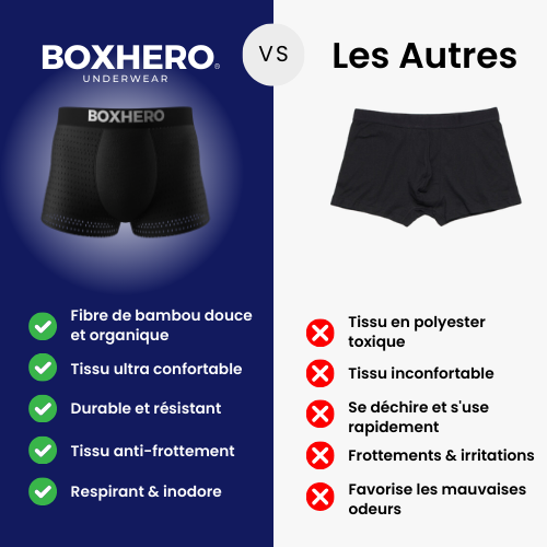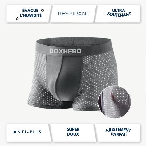 Voici le boxer BOXHERO, fabriqué à partir de fibres de bambou et de polyester de haute qualité. Il est conçu pour une durabilité supérieure.